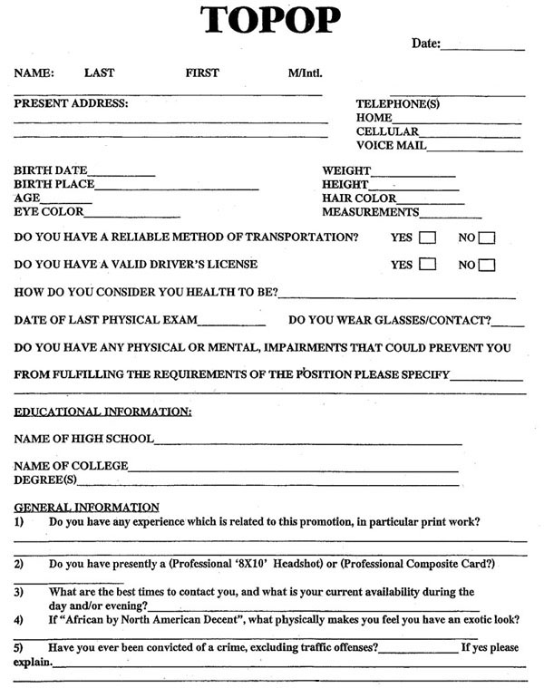 Birth Date (m/d/y): Birth Place: Age: Height: - Choose One - 6'2" or taller 6'1" 6''0" 5'11" 5'10" 5'9" 5'8" 5'7" 5'6" 5'5" 5'4" 5'3" 5'2" 5'1" 5'0" 4'11" 4'10" or shorter Weight: - Choose One - 76 - 85 lbs 86 - 95 lbs 96 - 105 lbs 106 - 115 lbs 116 - 125 lbs 124 - 135 lbs 136 - 145 lbs 146 - 155 lbs 156 - 165 lbs 166 - 175 lbs 176 - 185 lbs 186 - 195 lbs 196 - 205 lbs 206 - 215 lbs 214 - 225 lbs 224 - 235 lbs 234 - 245 lbs Eye Color: Hair Color: Measurements: